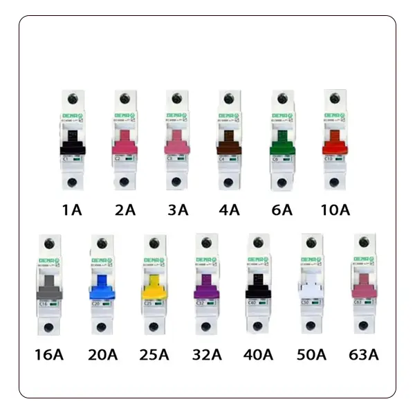 از طرفی میتوان کلیدهای مینیاتوری تک فاز را بر اساس مقدار جریان نامی آن نیز دسته بندی کرد:
